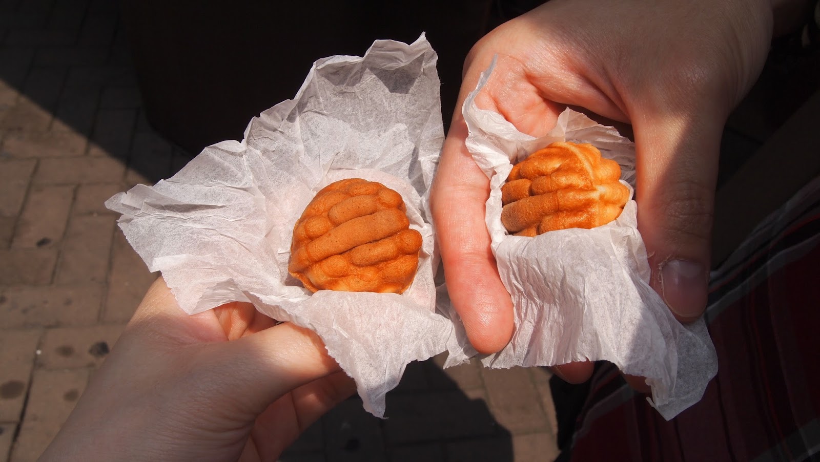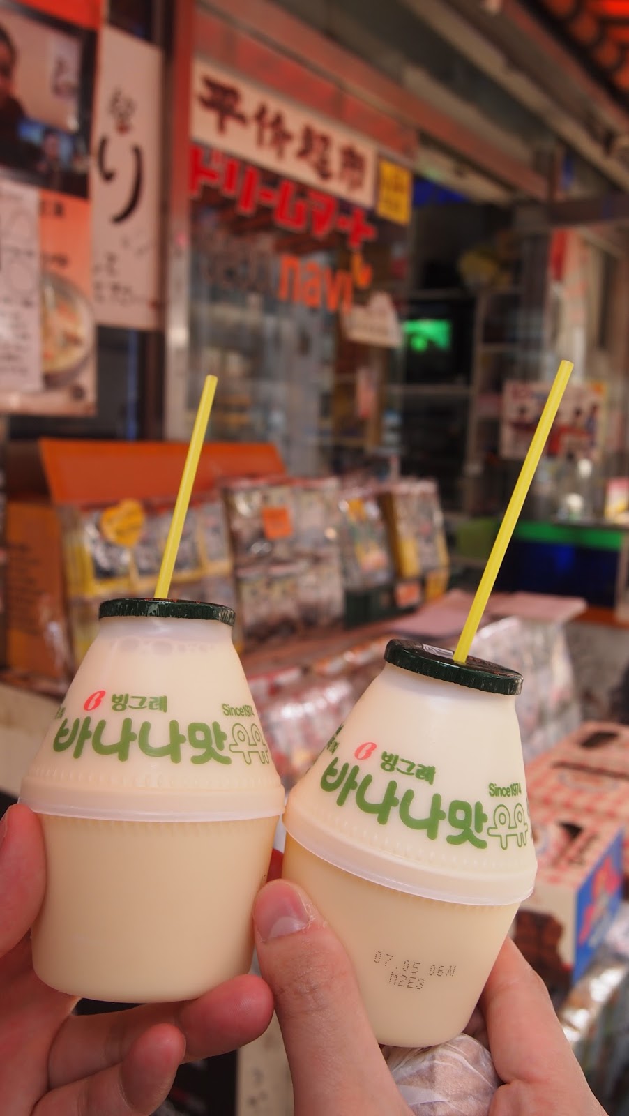 到了一家店買了香蕉奶,好人的老闆娘竟送我們一個好吃的合桃餅。