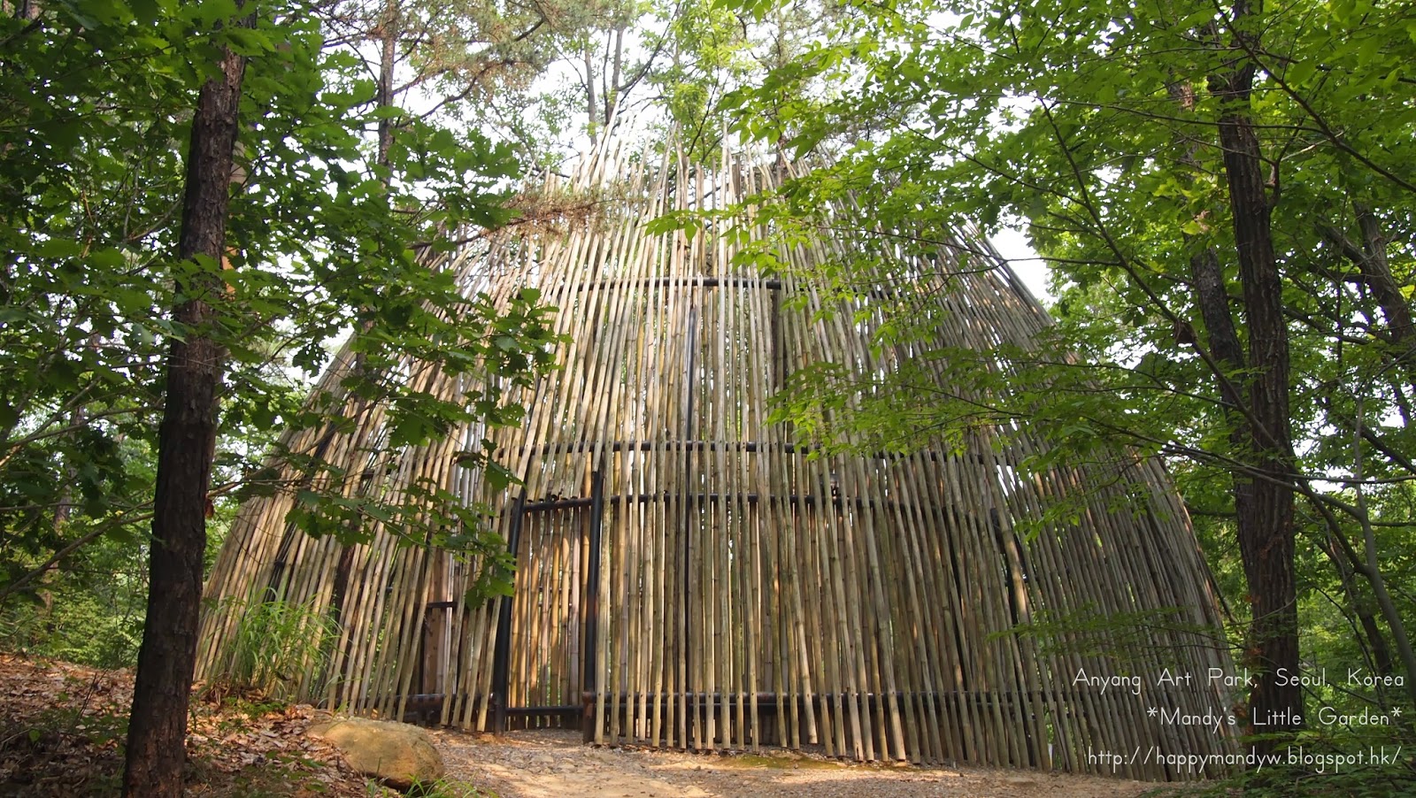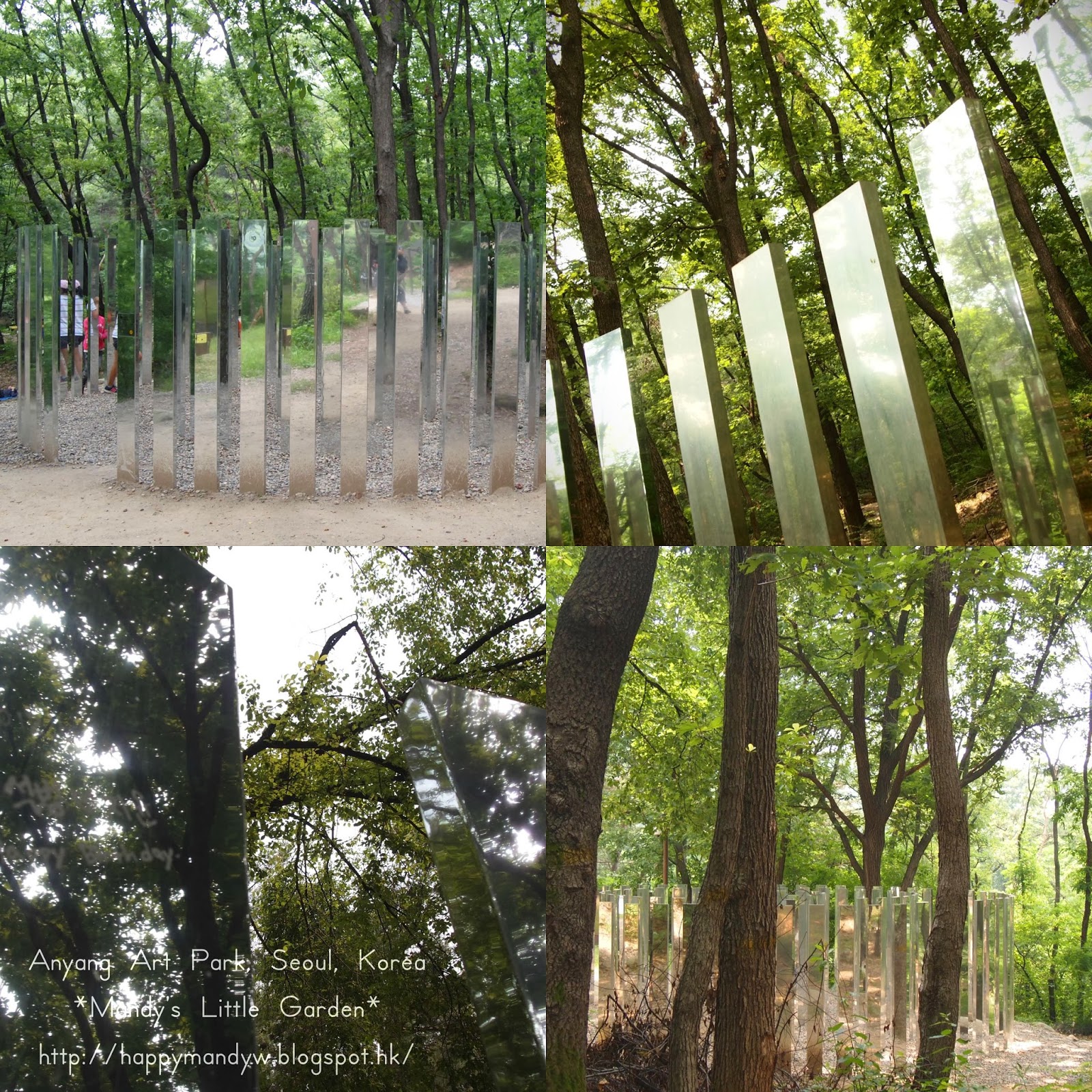 再往上一點看,你會發現山上有這個藝術品,是由一支支的類似鏡鋼的造成的,當你走進去,可以拍到很多個自己呢~~~